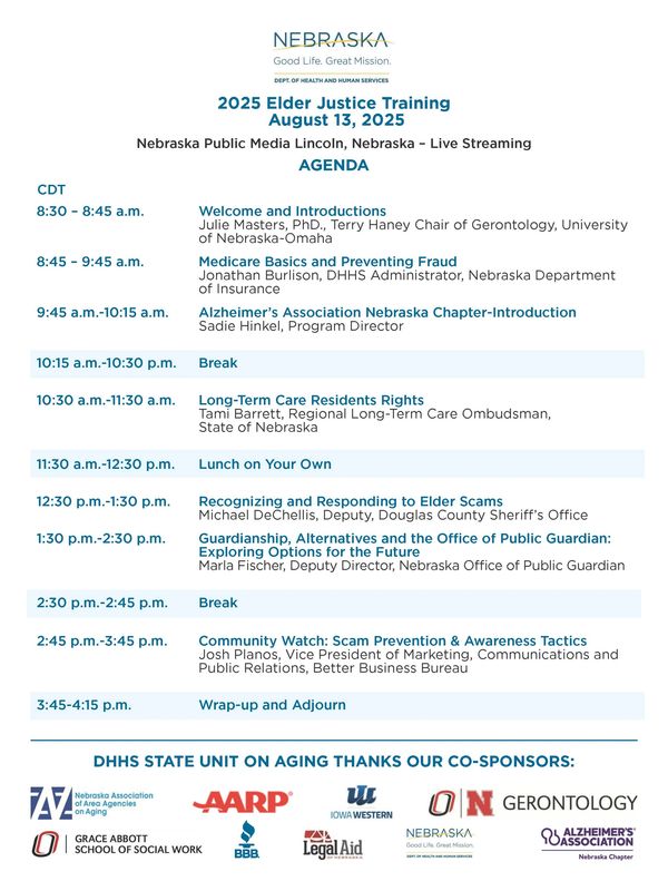 Sponsored by the Nebraska Mental Health and Aging Coalition, an initiative of Region 6 Behavioral Healthcare. This training project is 70% funded with state dollars, contracted from the Nebraska Department of Health and Human Services-Division of Behavioral Health and through Region 6 Behavioral Healthcare. Additionally, 30% is funded through Region 6 Behavioral Healthcare county funds.