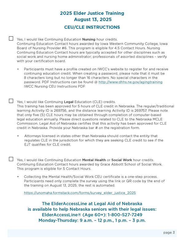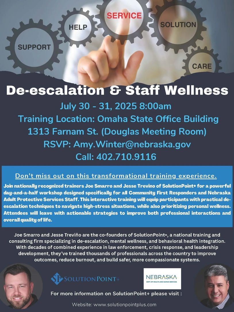 This training meets criteria for 6.0 continuing education credits for Nebraska and Iowa Licensed and Licensed Independent Mental Health Practitioners, Social Workers, and Professional Counselors. Credits will be awarded to participants who attend the entire training.